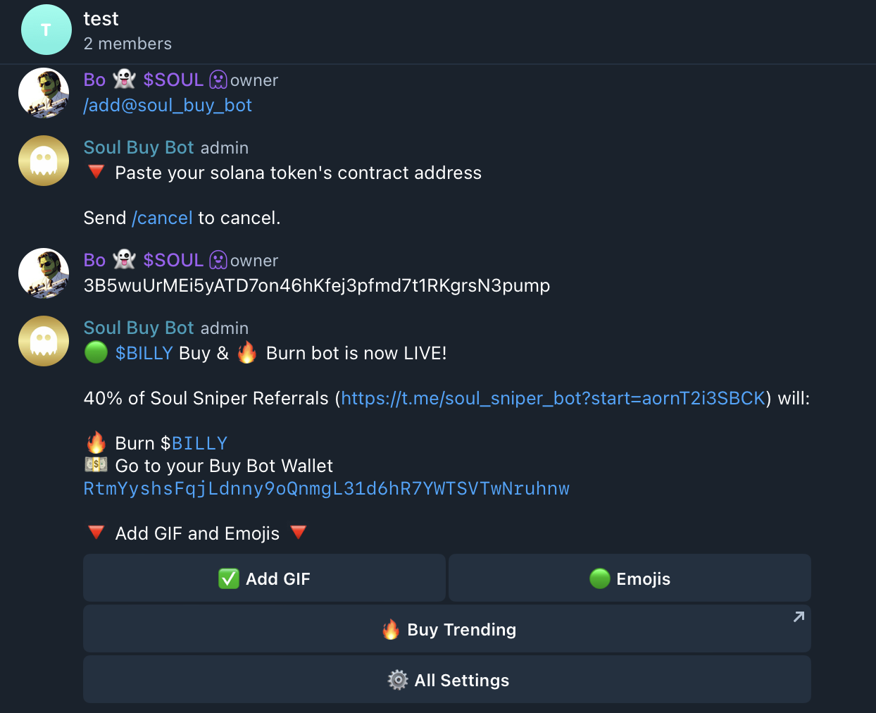 Soul Buy Bot will start to automatically post any buys and any burns directly to your telegram !&#x20;